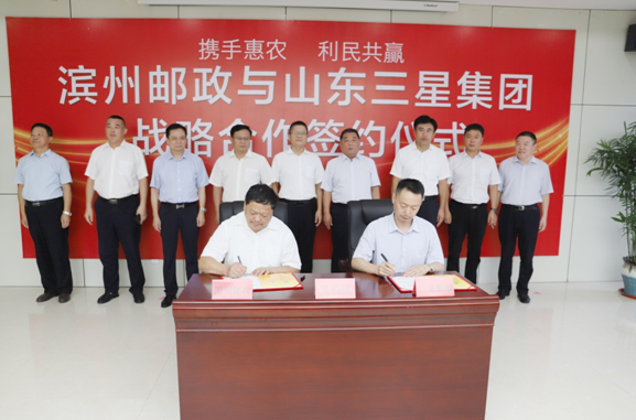 7月23日,濱州郵政與山東三星集團(tuán)戰(zhàn)略合作簽約儀式在山東三星集團(tuán)隆重舉行。此次簽約,濱州郵政、山東三星集團(tuán)強(qiáng)強(qiáng)聯(lián)手,通過構(gòu)筑更高層次、更具活力的郵企戰(zhàn)略合作機(jī)制,創(chuàng)建“資源共享、優(yōu)勢(shì)互補(bǔ)、合作共贏”的產(chǎn)融新平臺(tái),推動(dòng)三農(nóng)經(jīng)濟(jì)發(fā)展,打造新時(shí)代鄉(xiāng)村產(chǎn)業(yè)發(fā)展新高地。