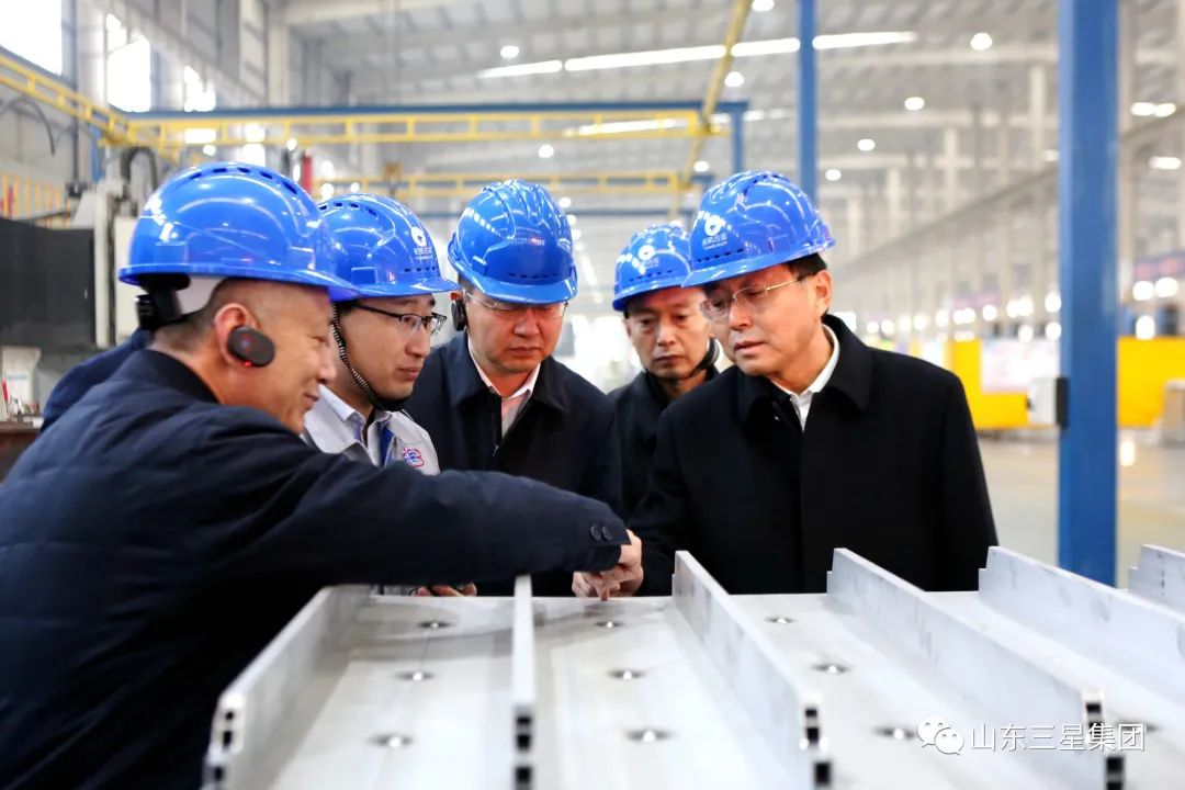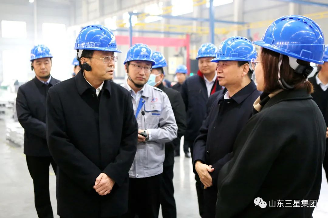 新年伊始謀新篇,領(lǐng)導(dǎo)調(diào)研暖意濃。元月3日,鄒平市委副書記、代市長(zhǎng)張謙,市委常委提名候選人、副市長(zhǎng)商獻(xiàn)文,副市長(zhǎng)郭志偉等領(lǐng)導(dǎo)來(lái)山東三星集團(tuán)調(diào)研指導(dǎo)工作。山東三星集團(tuán)黨總支書記、老董事長(zhǎng)王明峰,董事長(zhǎng)兼總裁王亞群,總經(jīng)理王明星,常務(wù)副總經(jīng)理王明亮接待了調(diào)研領(lǐng)導(dǎo)一行。