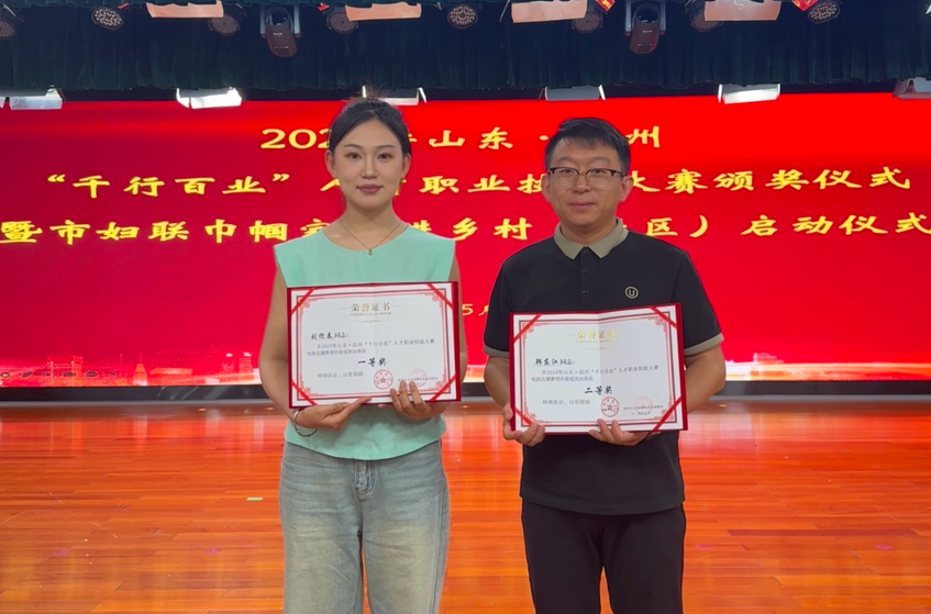 日前,2024年山東·濱州“千行百業(yè)”人才職業(yè)技能大賽頒獎儀式在濱州舉行。長壽花電商運(yùn)營部主播劉迎春、韓東江作為企業(yè)代表參賽,在“電商直播”賽項(xiàng)中攬獲第一、二名,分別獲得大賽一等獎、二等獎的優(yōu)秀成績。