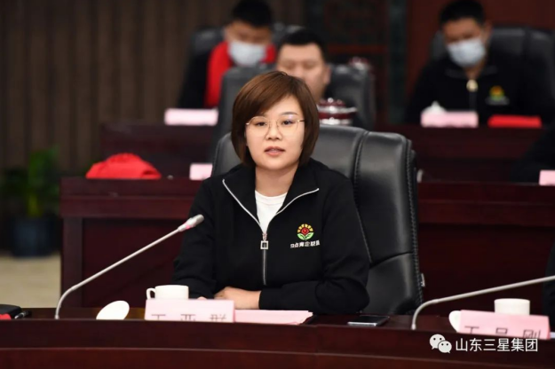 山東三星集團(tuán)董事長(zhǎng)、總裁王亞群等5名三星青年企業(yè)家代表參加會(huì)議。會(huì)上,王亞群宣讀倡議書。