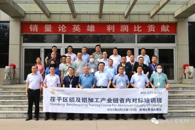 6月22日,聊城市茌平區(qū)鋁及鋁加工產(chǎn)業(yè)鏈?zhǔn)?nèi)對(duì)標(biāo)考察團(tuán)來山東三星集團(tuán)參觀考察。鄒平市工業(yè)和信息化局黨組成員李明陪同活動(dòng),山東三星集團(tuán)黨總支書記、老董事長王明峰,裕航合金公司常務(wù)副總經(jīng)理房濤接待考察領(lǐng)導(dǎo)一行。