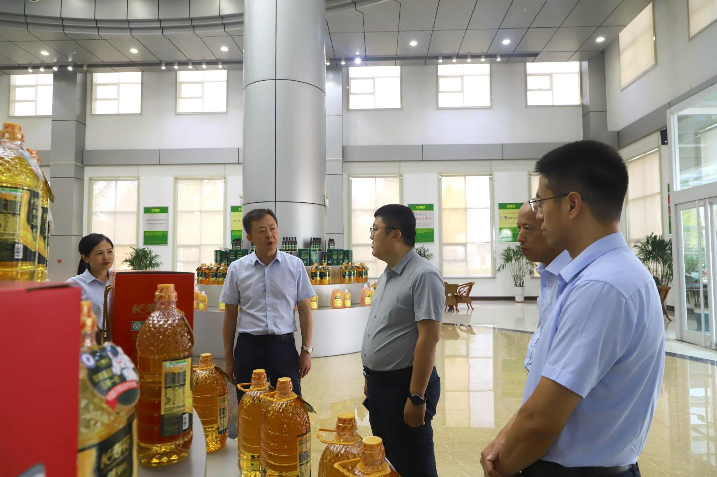在長壽花食品綠色生產(chǎn)基地,調(diào)研領(lǐng)導(dǎo)先后到產(chǎn)品展廳、全自動(dòng)灌裝包裝生產(chǎn)車間實(shí)地參觀調(diào)研,韓延庭就糧油產(chǎn)業(yè)布局、產(chǎn)品體系架構(gòu)及現(xiàn)代化創(chuàng)新管理情況等向調(diào)研領(lǐng)導(dǎo)做了詳細(xì)介紹,并就下一步產(chǎn)業(yè)產(chǎn)線升級(jí)、信息化建設(shè)、數(shù)字化轉(zhuǎn)型發(fā)展等方面工作進(jìn)行了深入探討和交流。
