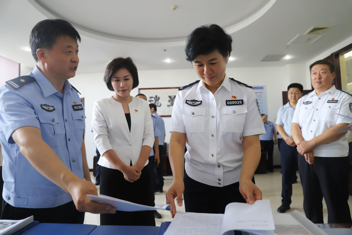 與會領(lǐng)導(dǎo)先后到山東三星集團(tuán)長壽花產(chǎn)品展廳及生產(chǎn)基地參觀,實地觀摩了鄒平市公安局駐山東三星集團(tuán)警務(wù)全科服務(wù)站,詳細(xì)聽取了駐企警長工作匯報,查閱了駐企工作檔案臺賬,與企業(yè)負(fù)責(zé)人進(jìn)行深入交流。山東三星集團(tuán)相關(guān)負(fù)責(zé)人表示,警務(wù)全科服務(wù)站自設(shè)立以來,駐企警長先后結(jié)合山東省公安廳經(jīng)偵總隊“魯劍2023”1號—侵企經(jīng)濟(jì)犯罪專項工作方案、濱州市公安局“礪劍·護(hù)航2024”專項行動,警企聯(lián)動開展了適用于企業(yè)發(fā)展的“雷霆正風(fēng)”侵企行為專項行動、“廉潔從業(yè)、全面防范、護(hù)航高質(zhì)量發(fā)展”為主題的“金盾護(hù)企2024”專項行動,并積極聯(lián)合各部門打通影響企業(yè)發(fā)展的堵點、難點和痛點,提振企業(yè)全員反詐意識和安全防范能力,業(yè)務(wù)對接有力度、偵辦案件有速度、護(hù)航發(fā)展有溫度,真正做到了無事不擾企、有事幫到底,為企業(yè)發(fā)展轉(zhuǎn)型提質(zhì)增添了新的聚合力和躍動力。