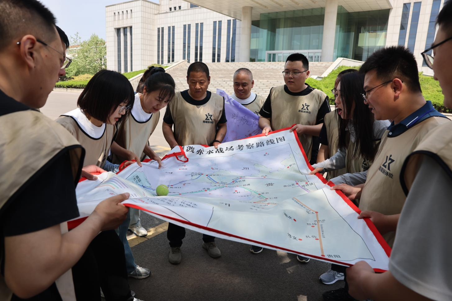隊員們通過協(xié)作拉動地圖,讓小球沿著“長征路線”滾動,在感受長征精神的同時,進(jìn)一步強(qiáng)化了團(tuán)隊的溝通與配合,增強(qiáng)了團(tuán)隊的凝聚力與使命感。