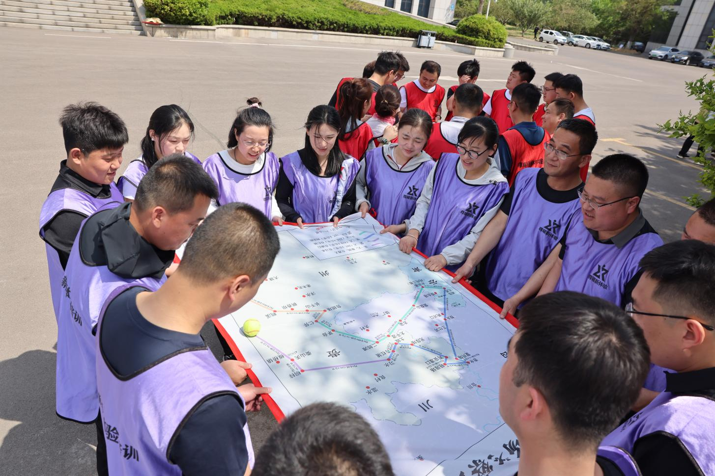 隊員們需緊緊拉住繩頭,通過精準(zhǔn)控制繩子的移動,將網(wǎng)球從起點順利運送到終點。過程中,稍有不慎網(wǎng)球便會滾落,前功盡棄,考驗著團(tuán)隊的默契與協(xié)調(diào)能力。各隊伍全神貫注、密切配合,在一次次嘗試中摸索出最佳方法,最終成功完成挑戰(zhàn),深刻體會到團(tuán)隊協(xié)作的重要性。